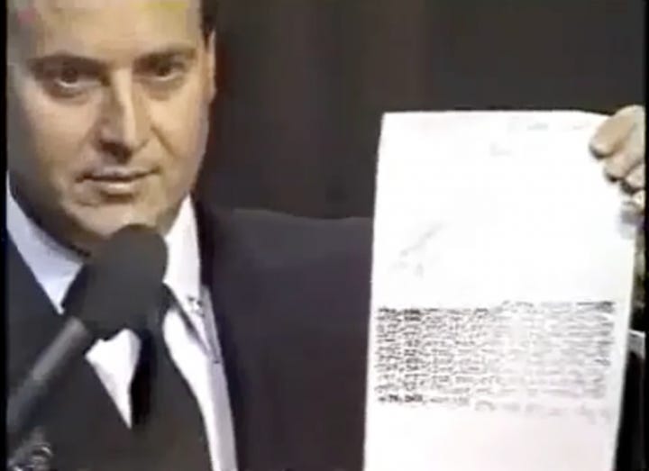 Now I'm going to show you right now I don't know if you'll be able to see it in, you in the audience, but as this is being televised I'm going to show it to the camera so that later if you see a tape of this you can then see what I'm displaying.