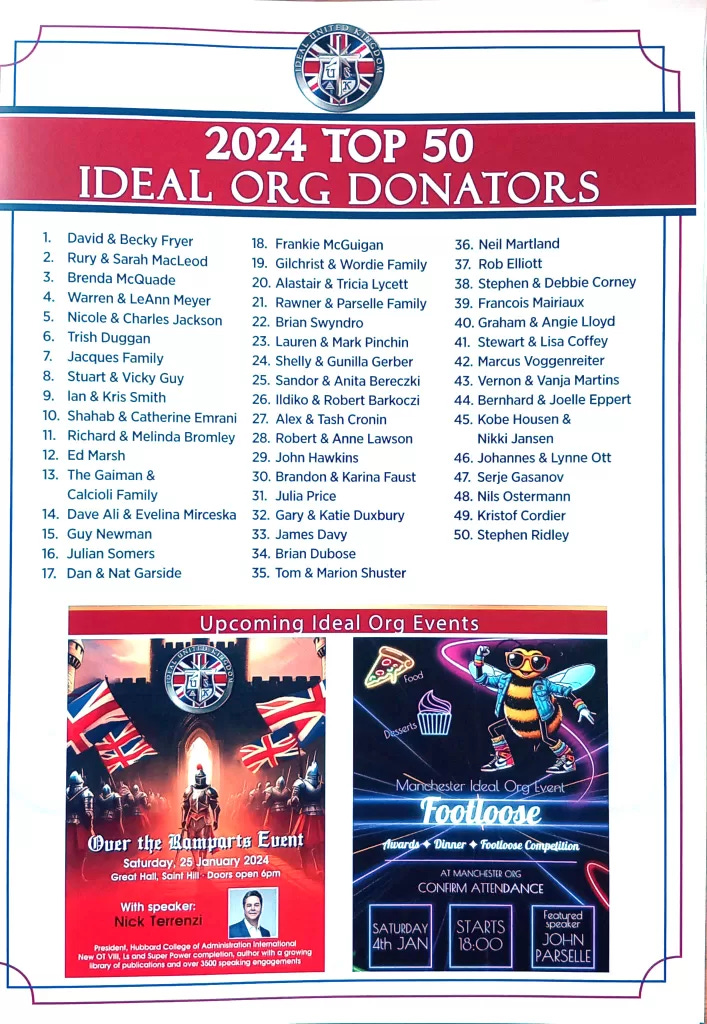 Over at his website, Alex posted an interesting new flier from Scientology UK, which celebrated that country’s top 50 donors to new “Ideal Orgs.”