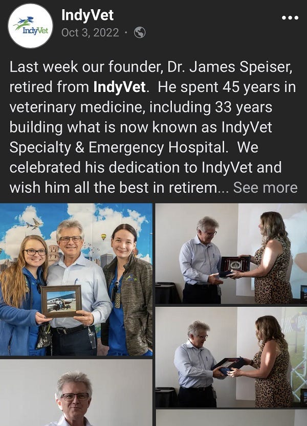 But what’s this? In October, Jim’s hospital announced that he was retiring. And Indiana business records indicate that the hospital had undergone a change in ownership structure the year before.