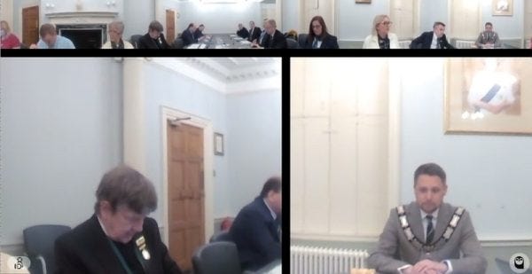 We had asked for a Zoom link and the council had sent us one, so we were watching live as Danielle Chamberlin told Mayor Visser that she had been punished in Scientology by Hubbard by being stuffed in a ship’s chain locker.