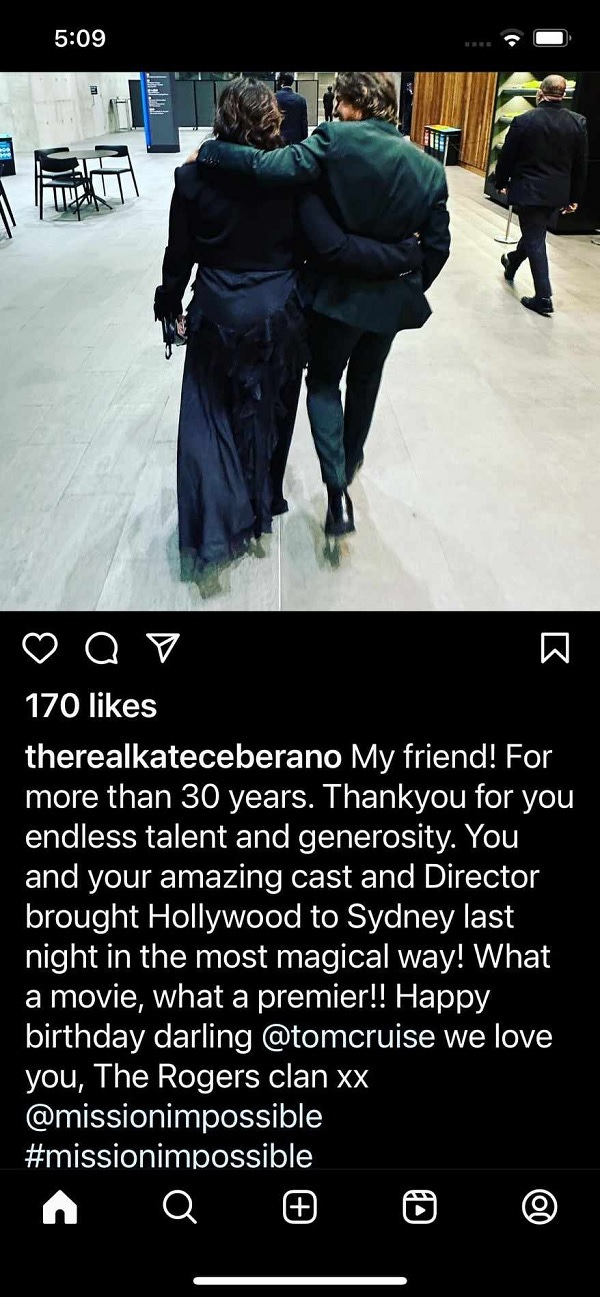 Trish says she sent Leah a photo that Kate Ceberano took earlier this year, arm in arm with Cruise, and told her this was why her parents won’t leave. “It’s the Tom Cruise show,” she says.