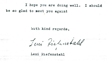 But Hubbard and Riefenstahl continued to stay in touch. Thanks again to Mitch Brisker, we know that they communicated in 1979. Mitch has a copy of a letter that Riefenstahl wrote to Hubbard that year in either August or November, depending on whether she was using European dating (“8.11.1979”).