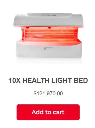 130 grand for a tanning bed, some oxygen, some “pulsed electromagnetic field therapy,” and some red lights? Where do we sign up!