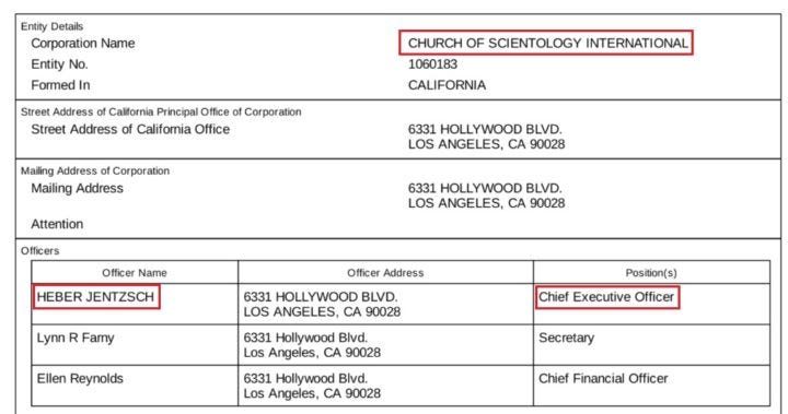 It was Reynolds who submitted the filing this past September identifying Heber Jentzsch as still the CEO of the Church of Scientology International.