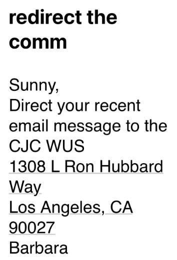 She was making it very clear to my never-in-Scientology husband, that on no uncertain terms, if I wanted to see or hear from her, I knew what I had to do.