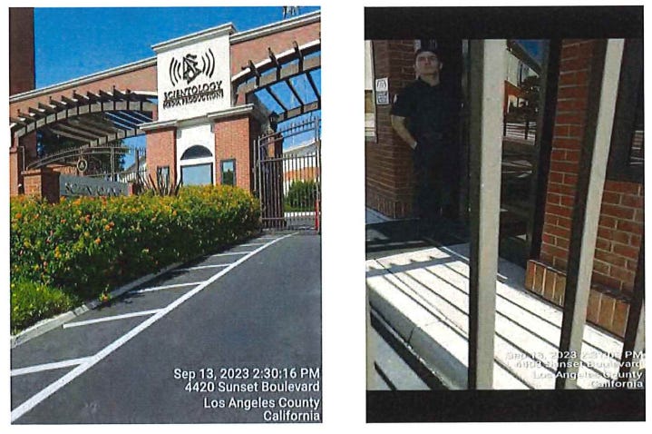 Substituted service on: DAVID MISCAVIGE; 4401 Sunset Blvd., Los Angeles, CA 90027; by serving: "John Doe" - security guard, person in charge. Caucasian male, 38 yrs, 5'6", 1501bs, black hair.