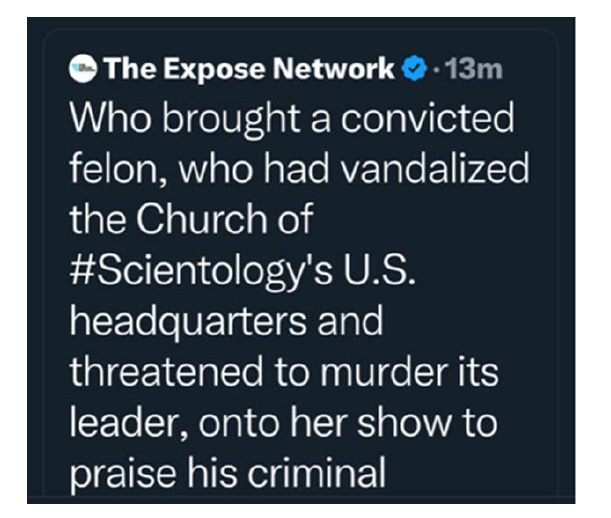 In the same vein, this tweet was posted on a Scientology account on August 2nd, the day after the Complaint was filed:
