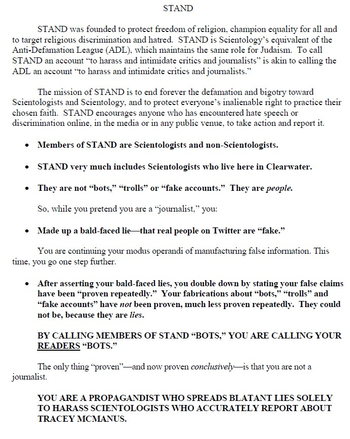 We can’t wait to see what Tracey has in the works, but in the meantime, savor this freakout from Scientology about its supposedly grassroots propaganda operation, the STAND League, which we have multiple times in the past proved has operated social media accounts with bogus names and stock photos.