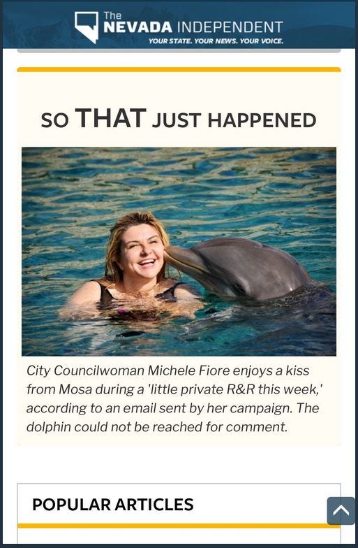 "The dolphin could not be reached for comment." -- From the Nevada Independent image