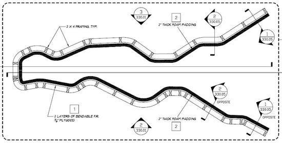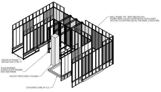 On drawings we looked at last night, we noticed something that seemed to be missing on other blueprints. Near the Sound Rooms — a couple of circular chambers — there was something called “Barriers.” Looking around some more, we found this drawing, which was labeled, Solid Barriers, Infinite Pit, and Water Wall.
