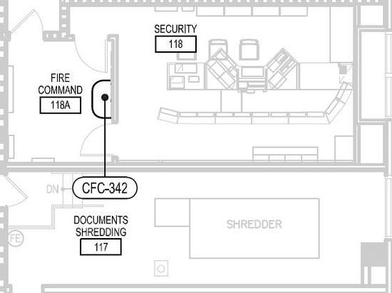 We’re going to take you back down to the first floor before we leave you today. We managed to spot the hi-tech security room that will no doubt keep a close eye on just about everything happening in the building — and outside it. Which is important, because if federal agents were suddenly to show up with subpoenas, watchful Sea Org members will then only have to run next door to the massive...well, see for yourself...