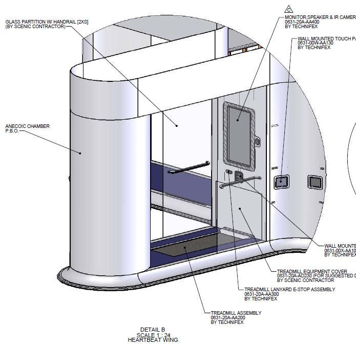 We’ve gone through even more files in the massive leak of plans that describe the soon-to-open “Flag Mecca” in Clearwater, Florida — otherwise known as Scientology’s “Super Power Building” — and we have more things to show you. In the wild “Perceptics” area on the fifth floor, there’s this Heartbeat Wing, for example, which features a treadmill, wall-mounted monitor, and an “anechoic chamber” — because we all know echoes suck when we’re testing the old ticker, so we need a chamber that cancels them out, right? (Click on images to embiggen.) Come inside for even more weirdness.