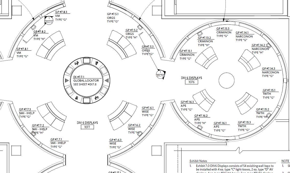 Wait a minute — a pain station? We looked into that further, and found drawings that indicate that the corner counter will feature multiple “spike plates” which can pivot. Some of them are labeled in this fashion: “Combined Plate” (CP), Hot-Cold-Electric, Hot, and Cold Versions. Are Scientologists going to get shocked with hot electrified spike plates?