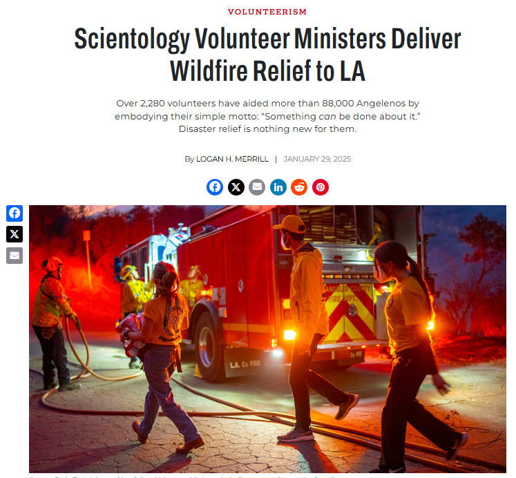 Anyway, after Scientology put out several press releases about its “Volunteer Ministers” doing a heckuva job using the catastrophic wildfires in Los Angeles for photo opportunities, it was Freedom’s turn to take a crack at trying to get someone, anyone, to pay attention to all the great things the VMs are doing!
