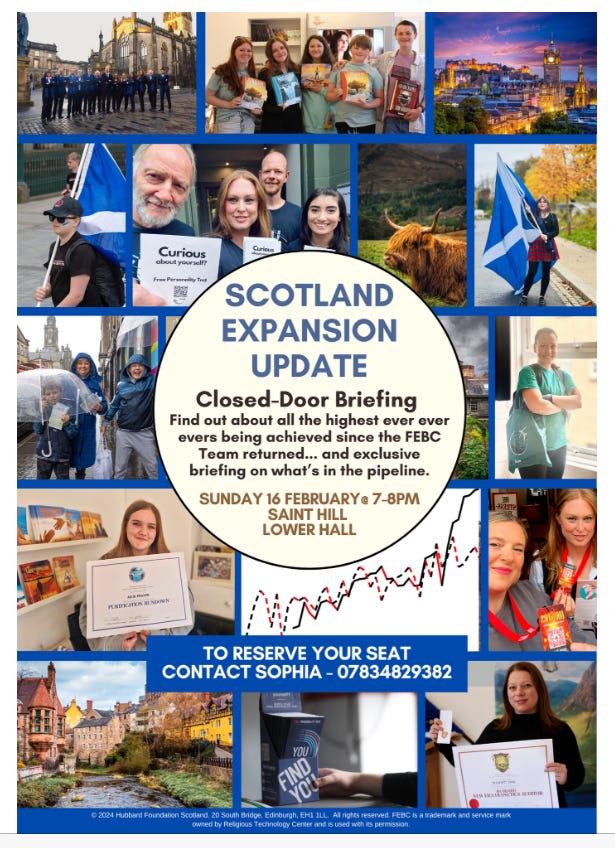 “That wording is just being used to make it seem more exclusive and special. It will just be a load of hogwash about how they’re ‘closer than ever’ to opening Edinburgh’s Ideal Org and how they've 10Xed their stats since the Golden Age of Admin. Like, instead of one book a week they’re now selling ten,” he says. “It’s just sad to see so many children used in those photos.”