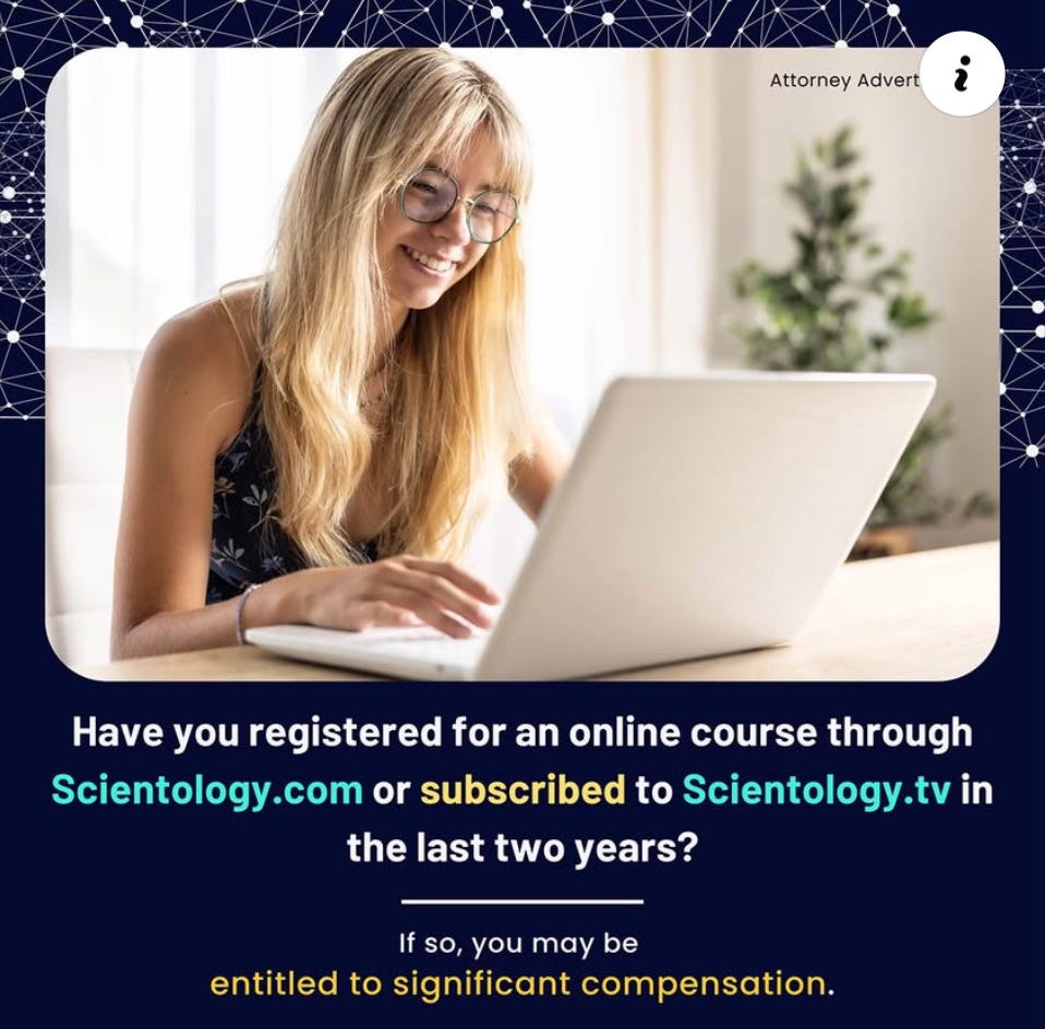 A few weeks ago, we noticed ads like this popping up at Facebook, encouraging people to send in information if they had taken online courses with Scientology.