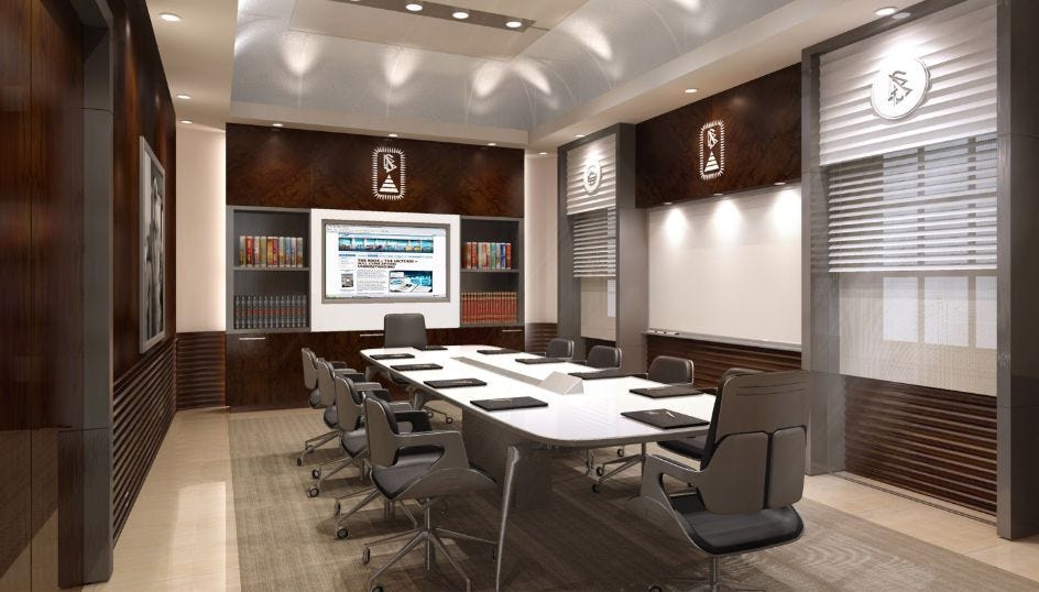 On the seventh floor, we find the offices of the man in charge. And here’s the board room where the really big decisions get made, apparently...