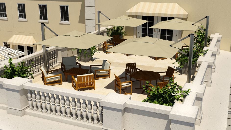 And when Miscavige wants to get away from it all, there’s yet another terrace, this time on the level of the seventh floor, for soaking up the Florida sunshine...