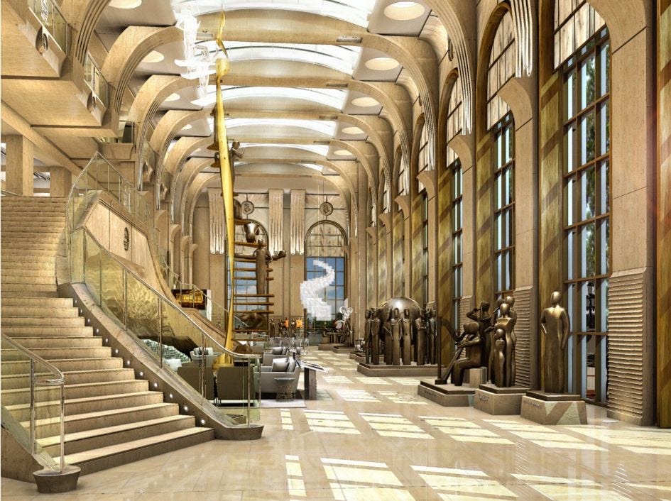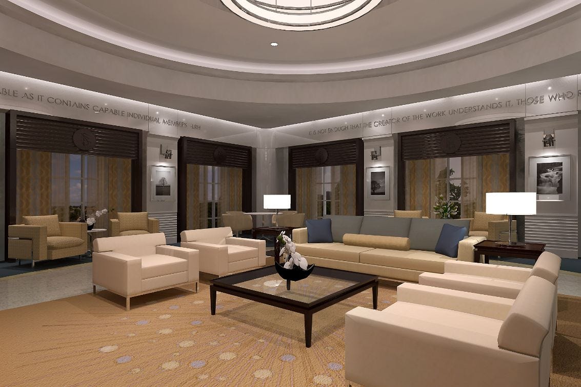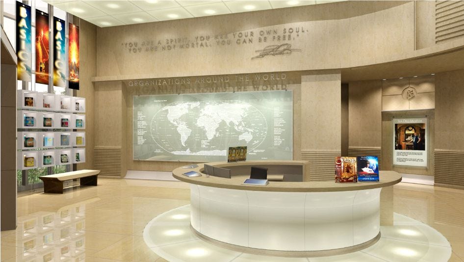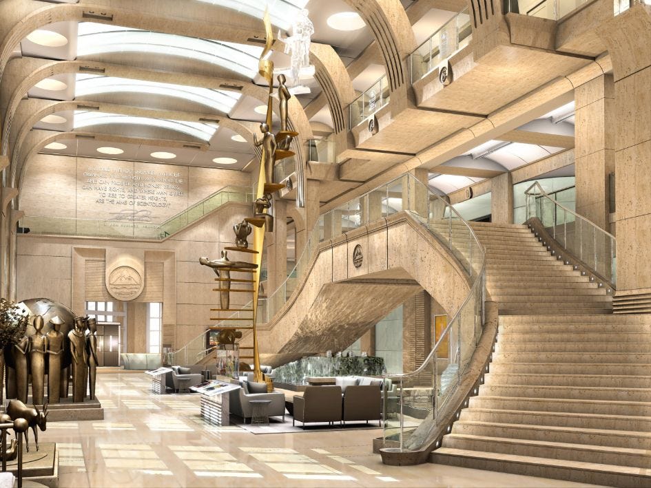 One of our very favorite series of articles that we did at the Village Voice were based on renderings and architectural drawings of Scientology’s “Flag Building” — also known as the Super Power Building — that were leaked to us back in 2012, a year before the building formally opened. If you go look up those stories today at the Voice website, 13 years later, the images are long gone. But we managed to recover them and decided we’d find a place here at the Substack for them. They are still, to this day, the most complete rundown of what this building is like inside and out. This first story was originally published on January 9, 2012.