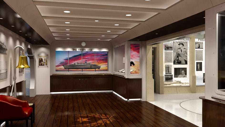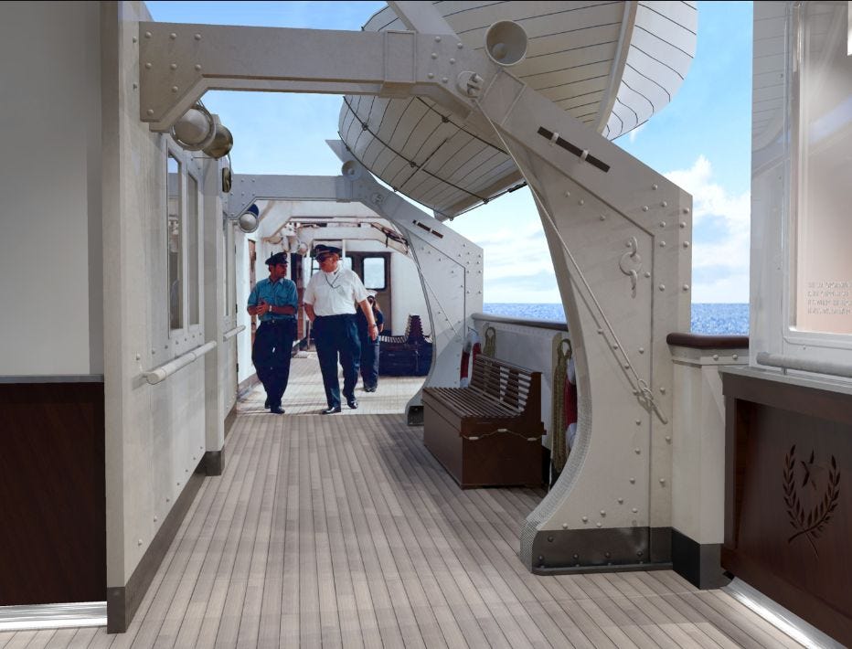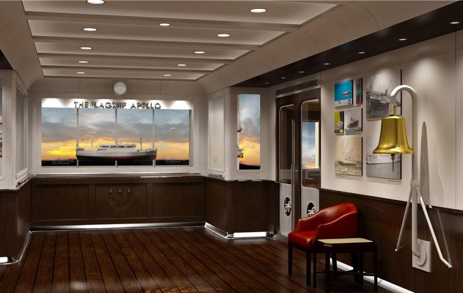 And there’s also this recreation of a deck on the Apollo, complete with lifeboat and a jovial photo of the Commodore himself...