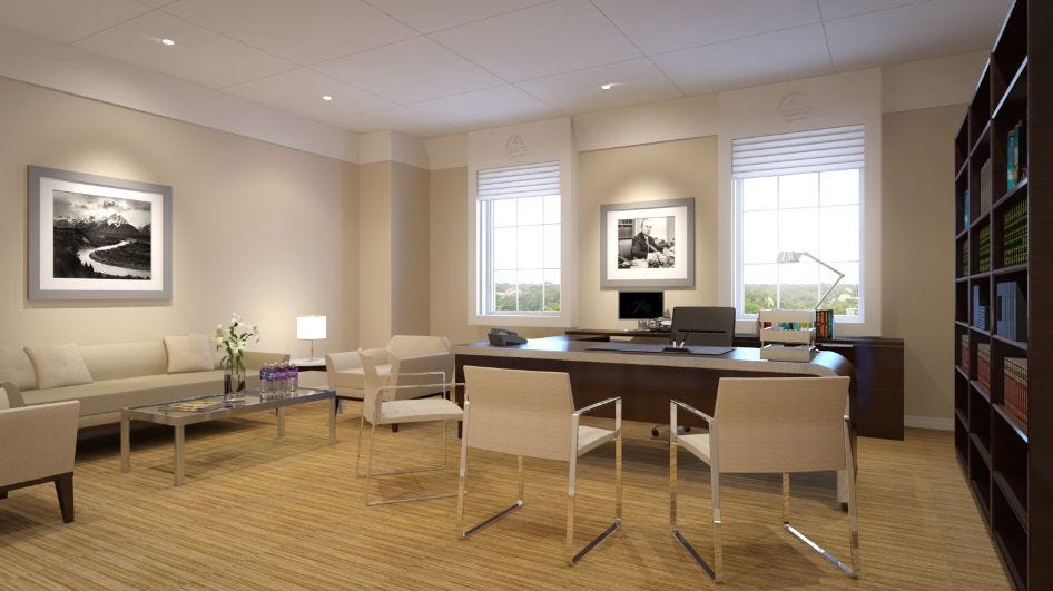 Every Scientology “org” is supposed to create an office for Hubbard, even 26 years after his death, in case the “old man” suddenly returns. Here’s what his office looks like on one of the architectural drawings, just one small room in a city-block sized building...
