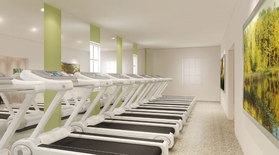 And that’s not the only detoxing happening on the sixth floor. There’s also a Purification Rundown facility on this floor -- the “Purif” is Scientology’s well-known self-torture program that has its subjects sitting in a sauna for hours and hours while hopped up on superdoses of niacin. We recently talked to actor Philip Boyd, who said he bailed on the Purification Rundown after he began throwing up following 29 days of sitting in a sauna for five hours a day. “I finally told them, ‘I’m done.’ I wanted no more part of it,” he told us. Here in the Super Power Building, however, you’ll find the Purif’s trappings, such as treadmills...