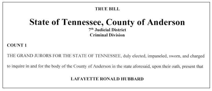 Justin Craig/Lafayette Ronald Hubbard is currently housed at the Anderson County Detention Facility in Clinton, Tennessee, on $536,000 bond.