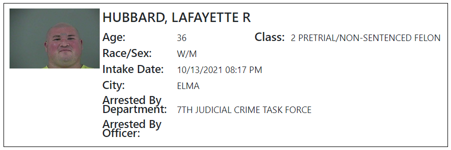 I, Detective Sergeant Charles Wally Braden investigated an incident that occurred at the Anderson County Detention Facility, 308 Public Safety Lane in Housing Unit 3, Cell 314. Corporal Barry Burchfield, Deputy Jordan Hannah and Deputy Kayla Stallings reported on 12/31/2021 at approximately 8:20 P.M. the Defendant, inmate Lafayette Ronald Hubbard vandalized his bunk in his cell by pulling it out of the floor and throwing it on the tables in the dayroom causing the bunk to break into several pieces. Deputies reported Cpl. Burchfield ordered the Defendant to lock down when he eventually complied and returned to his cell and closed the door. Cpl. Burchfield stated he and Deputy Stallings checked his cell door to make sure it was locked when the Defendant stated “If someone disrespects us again, I’m not afraid to stab them with a piece of metal. I have been to prison and jail for years and I am not afraid to go back.”