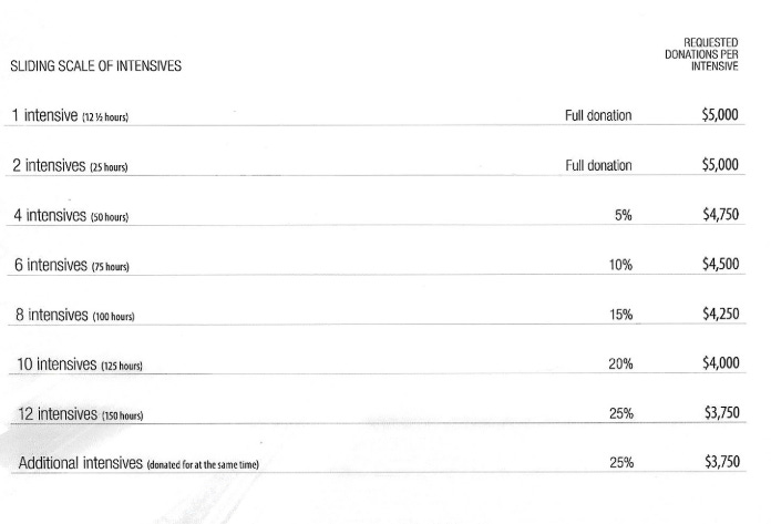 But never fear, you get discounts for buying multiple intensives! Here is the breakdown from the price list…