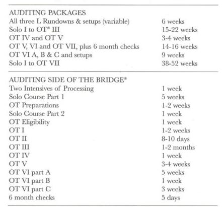 An “intensive” is 12.5 hours of auditing, and it can take quite a few to get a particular auditing level done. According to another price list we posted in 2021, Scientologists are told to figure they will pay for two intensives a week, and levels can take weeks or months.