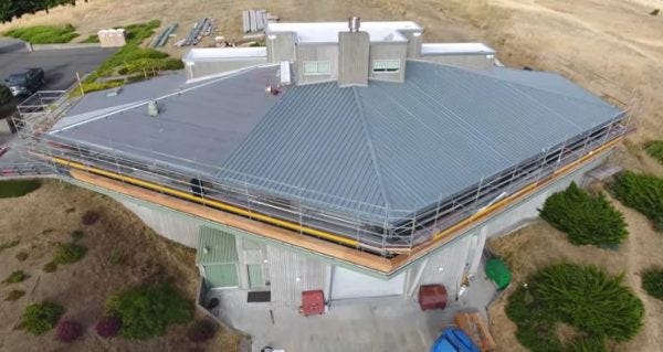 Our drone pilot documented some construction work at this vault, which has a spaceship-like entrance structure, and exists near some troubling earthquake faults.