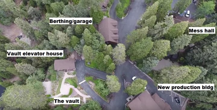 This vault was built into an existing underground mine in the California gold country. Very little is ever reported about it, but the Bunker also got a drone flyover it for the first time in 2016.