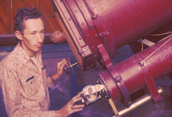 By the end of 1957, he was using a larger telescope of his own construction, he’d made news as the discoverer of a comet, and his survey had grown to fill six notebooks and 1,200 pages.