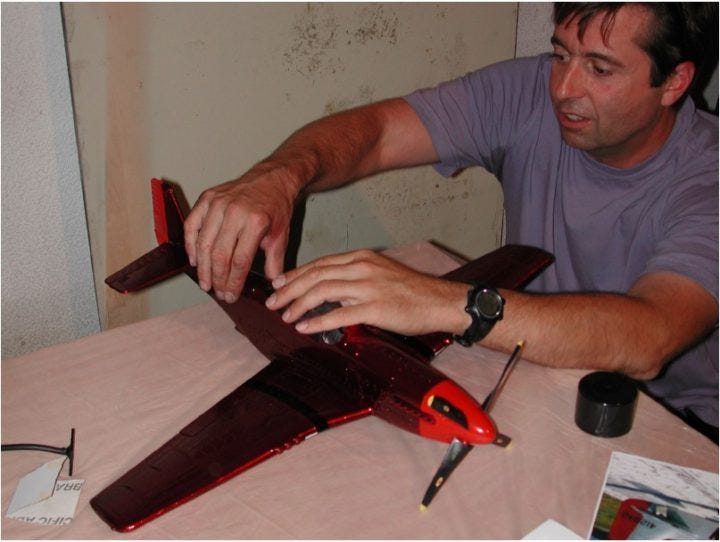 In the first one, Brousseau explains, he’s holding a model of a P51 Mustang that will be a gift to Cruise. The photo was taken at the Gilman Hot Springs highly secretive Scientology headquarters in the California desert.
