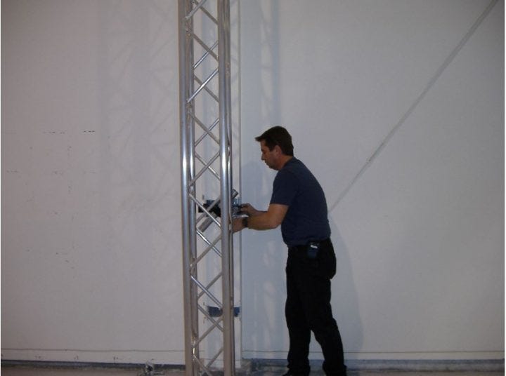 In this photo, Brousseau can be seen setting up a truss system in “Tom Cruise’s hangar at Million Air aviation services in Burbank, California.” (Tom Cruise has an airplane hangar? Yowza.) Cruise paid for the materials, Brousseau says, but “99 percent” of the work was done by Sea Org members, who are paid $50 a week.