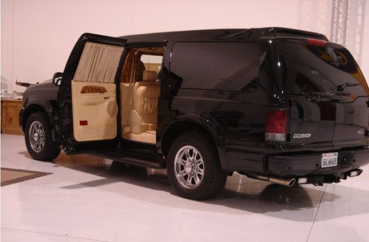 Here’s another shot of the Excursion in the airplane hangar. As Brousseau notes, you can just see that P51 Mustang model in the background.