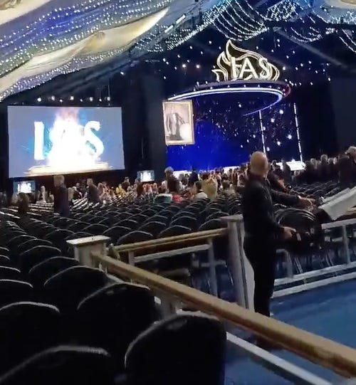 Another shot taken by someone else gives the view toward the back of the tent. We have always scoffed at the attendance figures that Scientology puts out, as many as 7,000 some years.