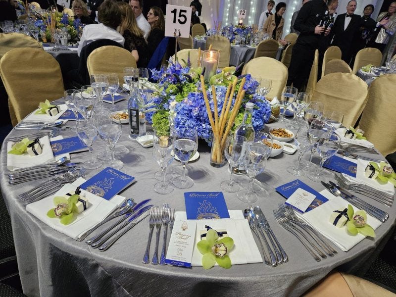 On Saturday, the rows of chairs were cleared out and tables were put in for the fancy Patrons Ball dinner as guests dressed up in black tie.