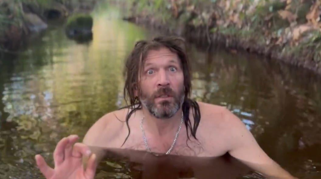 Here’s a still from a video that Dando posted in March 2025, with him wading in a Brazilian stream, so you can see how he looks these days and that it does match the person in the video…