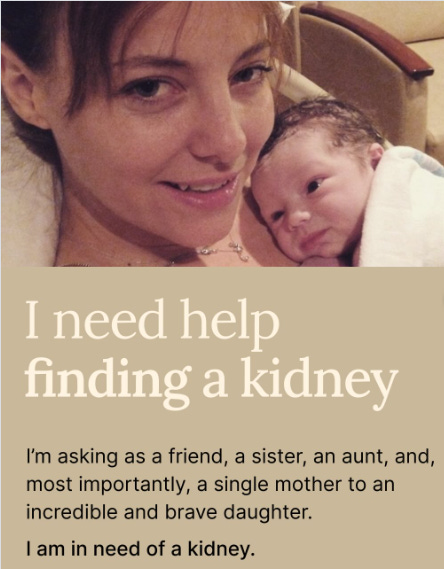 Born with underdeveloped kidneys, she received a transplant in 2017 with a kidney from close friend Chris Wadhams, which she says gave her eight more good years with her daughter Fianna, but she’s had numerous complications since then, including the BK virus, which can compromise transplants.
