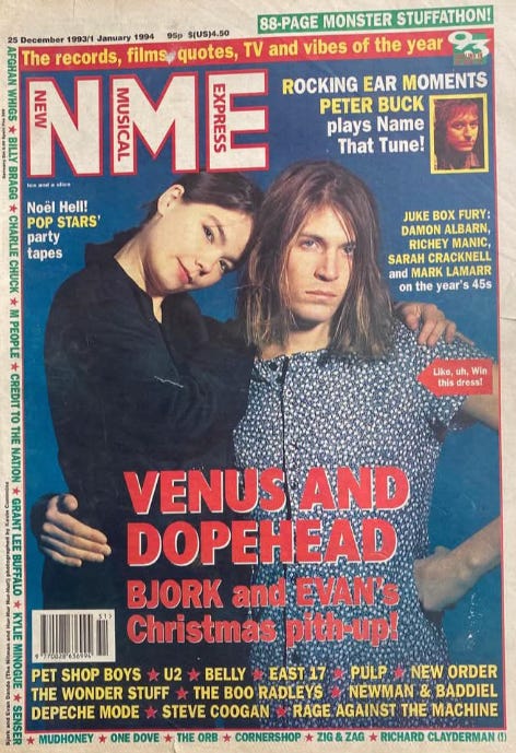 He also looks back at his career, as when he recently posted this NME cover from Christmas week 1993 that featured a cross-dressing Dando with Björk.